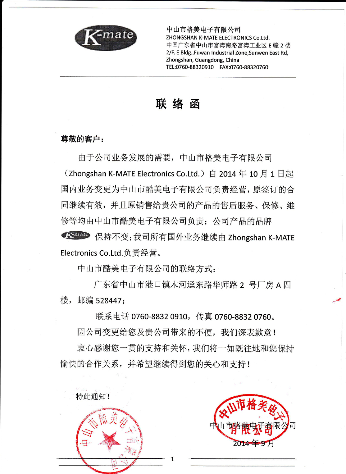 您所在的位置: 首頁  > 新聞動態  > 公司新聞  > 聯絡函-關于公司業務變更